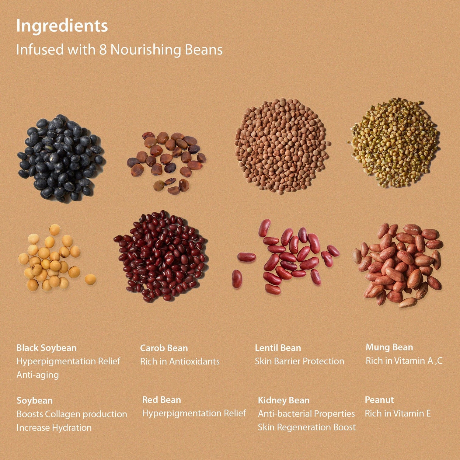 It is made with eight natural bean extracts – Black Soybean, Soybean, Carob Bean, Mung Bean, Kidney Bean, Lentil Bean, Red Bean and Peanut, to provide antioxidants and moisturizing properties that are needed for a youthful radiance. It also contains 120 hours fermented Olive and Argan Oil, the maximum nutrients efficiency for deep skin hydration.